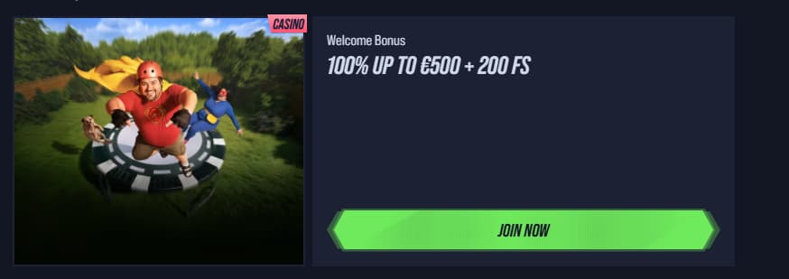 100% UP TO €500 + 200 FS |